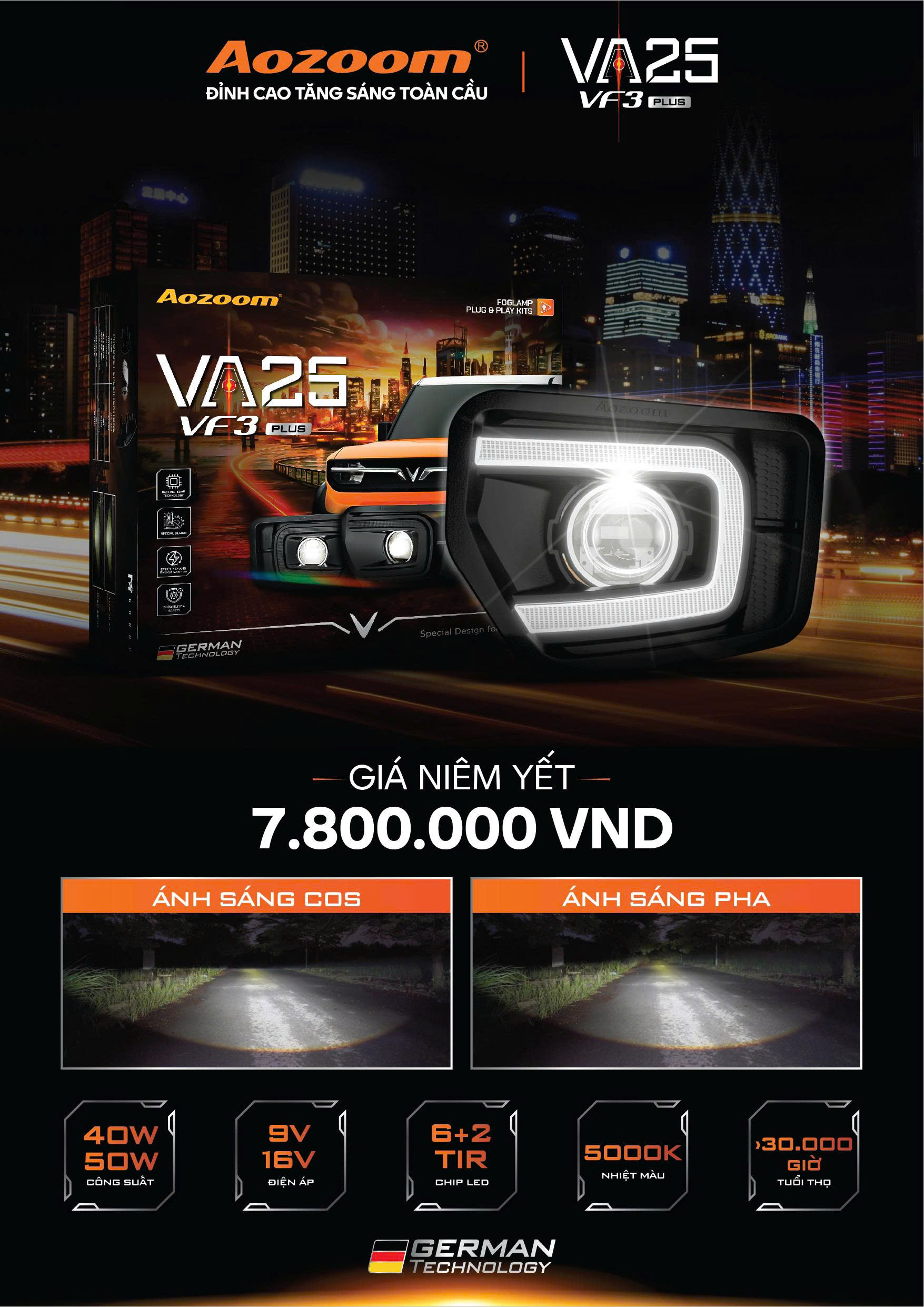 Đèn Ô Tô Bi Gầm Aozoom VA25 VF3 [40 - 50W]