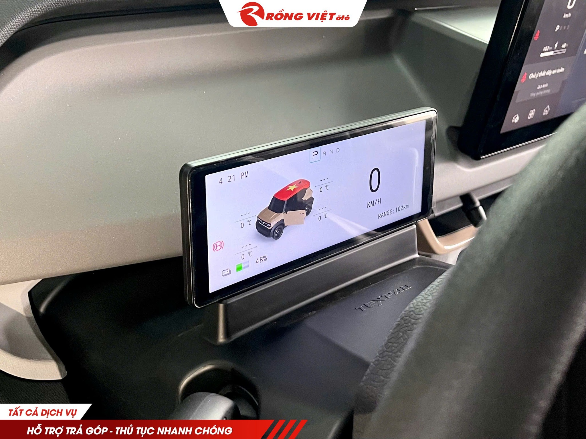 Với màn hình Texpad ODO VinFast VF3, tài xế có thể dễ dàng quan sát tốc độ thực tế của xe, lượng pin còn lại của xe, cùng với đó là các loại đèn báo hiệu khác.